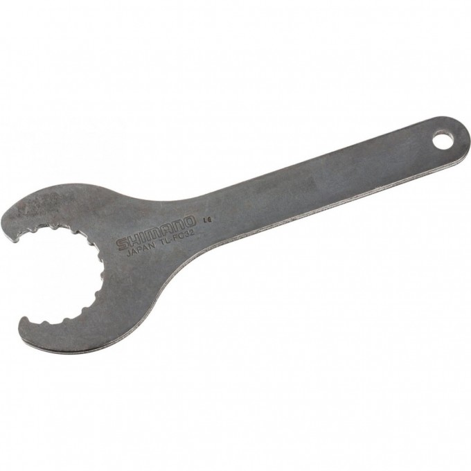 Если Вы решили установить на свой велосипед шатуны с кареткой на выносных подшипниках, Вам понадобится специальный инструмент. Ключ Shimano TL-FC32 предназначен для установки каретки такого типа. Материал из которого изготовлен инструмент - инструментальная сталь, которая обеспечивает долговечность и прочность.